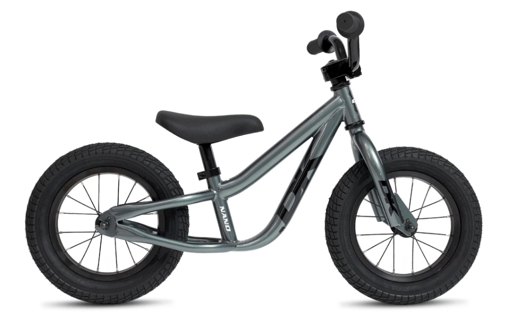 The DK Nano 12" Balance Bike in Silver/Sage is designed to help young riders develop balance and coordination. With its lightweight steel frame and low standover height, it's easy for kids to mount and maneuver. The pneumatic tyres provide a smooth ride over various surfaces, while the mini alloy 4-bolt front load stem ensures durability. This balance bike is perfect for children learning to ride, offering a fun and safe way to build confidence on two wheels.
