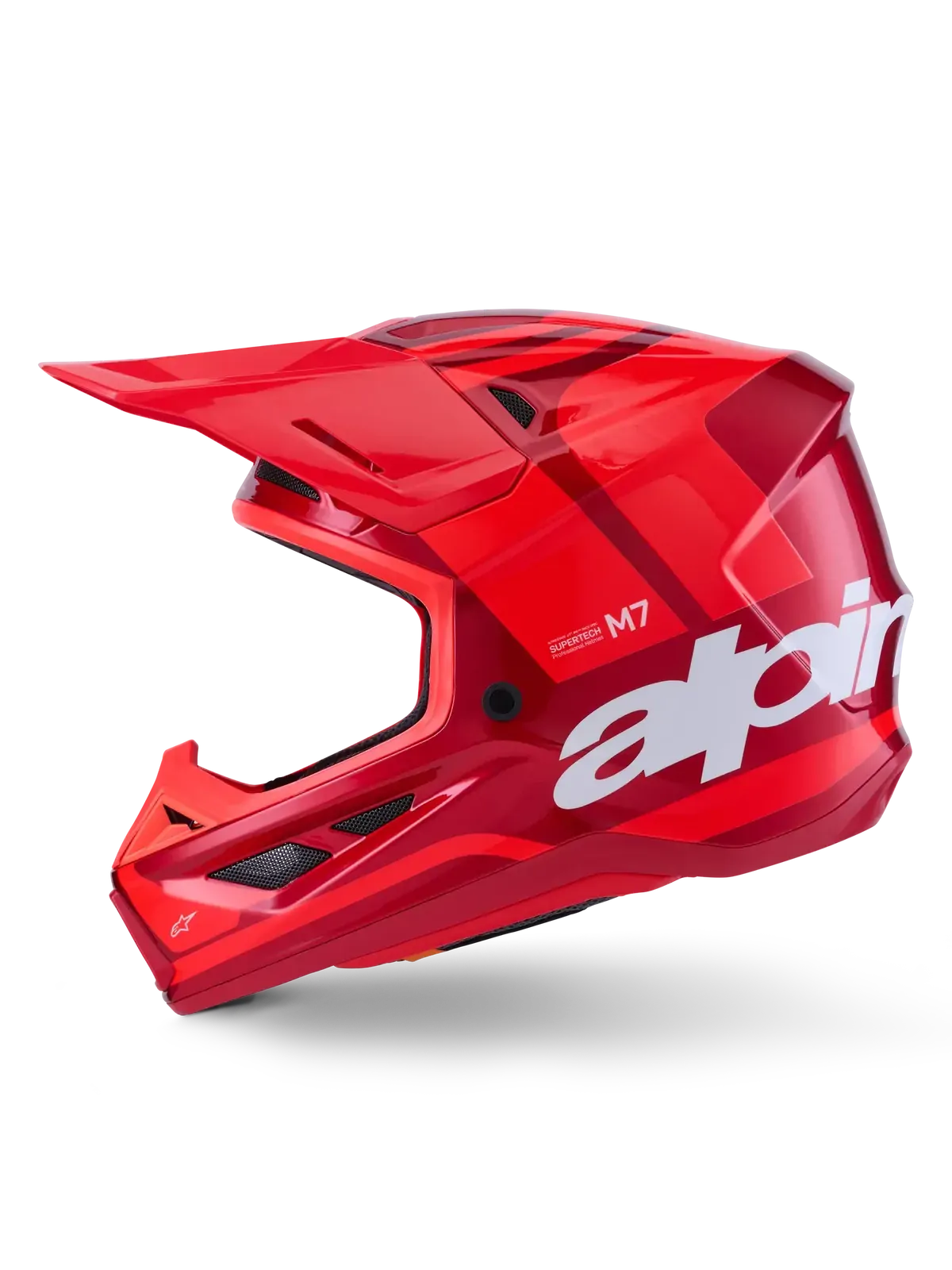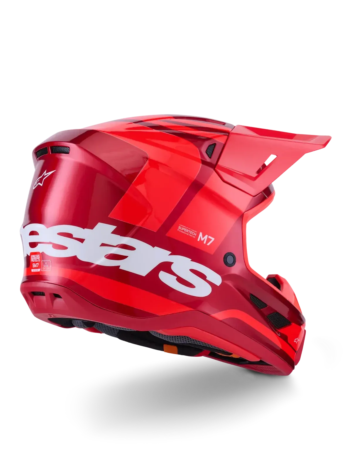 The SM7 helmet is engineered for off-road racing and is optimized to offer the perfect blend of superior ventilation and comfort in a lightweight helmet, while its supremely aerodynamic composite shell delivers exceptional impact protection. As well as Alpinestars patented A-Head Fitment and Visor Detaching Systems, the SM7 is equipped with innovative PLASMA technology at the lower side of the shell edge for optimum energy dissipation in case of contact with the collar bone area.
